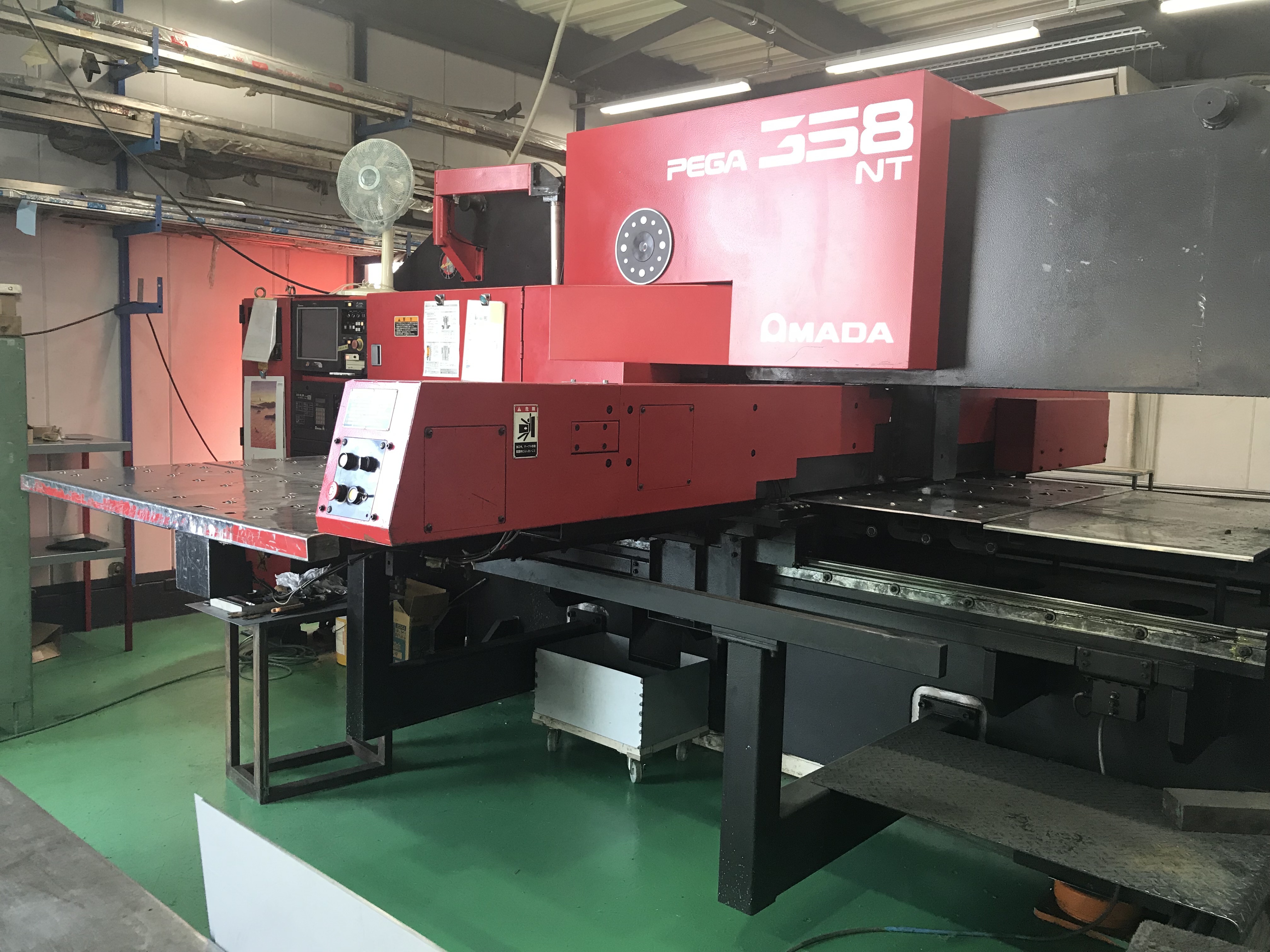 【プレス機械の一種で、アルミやステンレスといった板金を打ち抜き加工に使う板金機械です。